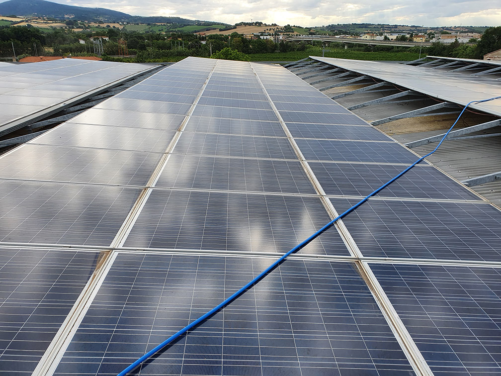 Lavaggio impianti fotovoltaici Marche: la pulizia dei pannelli fotovoltaici è un’operazione fondamentale per garantire l’ottimale efficienza dell’impianto, che può incrementare fino al 30%, creando dunque un vantaggio economico e di durabilità.