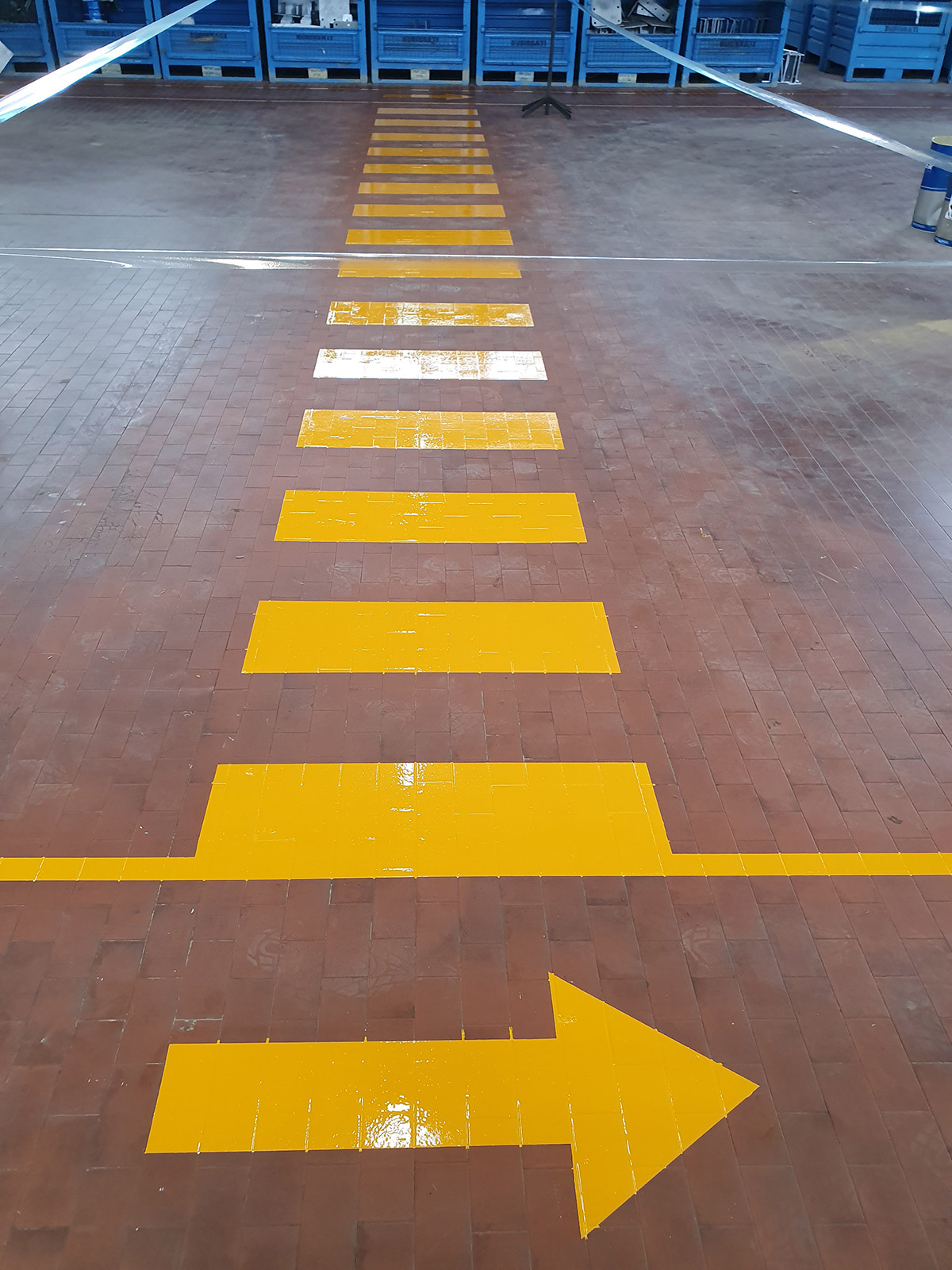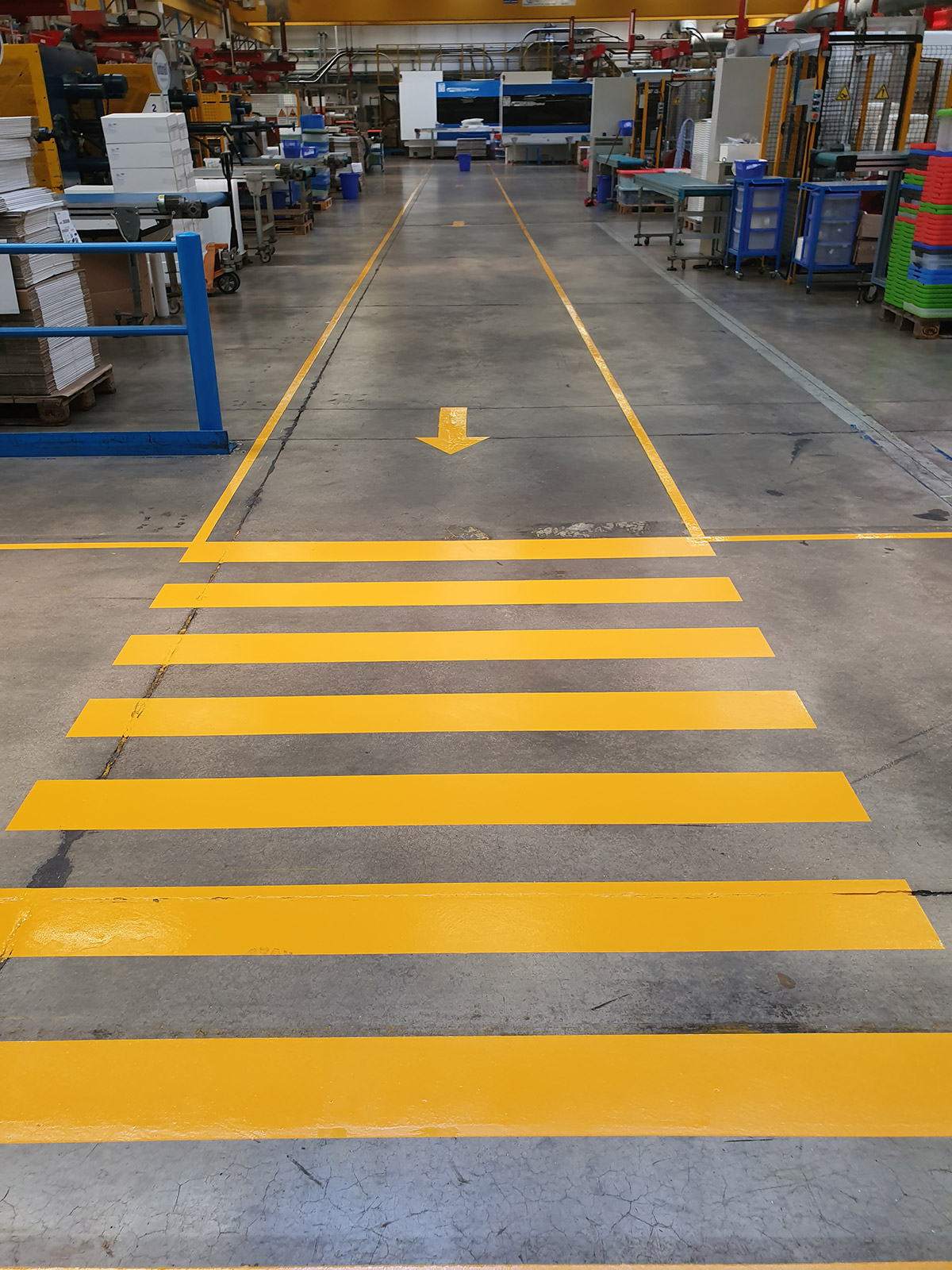 Allo scopo di gestire la viabilità all’interno delle aree produttive in totale sicurezza e quindi evitando possibili incidenti, diventa indispensabile ricorrere alla segnaletica orizzontale interna.