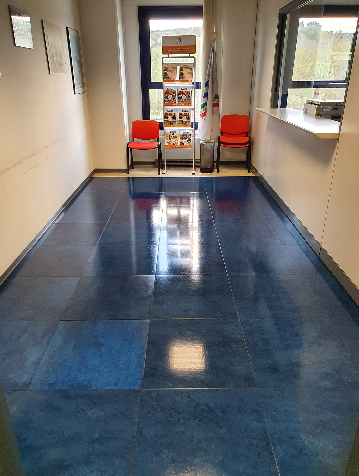 Effettuiamo inoltre trattamenti su pavimentazioni sia interne che esterne, civili ed industriali, intervenendo su diverse tipologie di materiali come cotto, porfido, pietra serena, linoleum, marmo, travertino, cemento al quarzo (calcestruzzo), gomma e parquet. Oltre alla manutenzione ordinaria, proponiamo il servizio di prima pulizia, con il quale, a seguito della posa, il pavimento viene lavato con acido tamponato, trattato con prodotti antimacchia e rifinito in base alle tonalità scelte dal cliente.